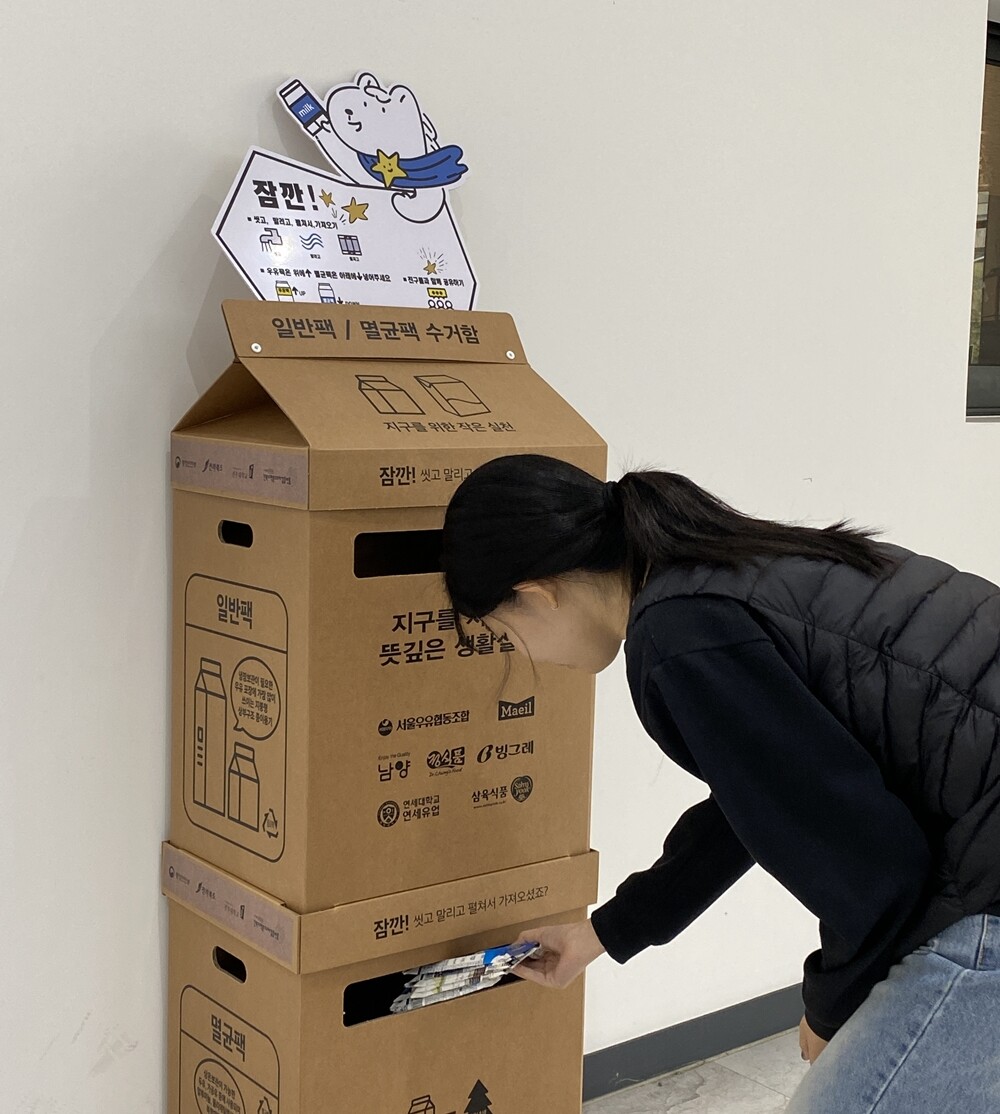 종이 팩 배출이 많은 대학 내 5개 거점을 중심으로 종이 팩은 일반 종이와 분리 배출하고 배출 시 내용물을 제거하는 등 올바른 분리배출 방법을 알리고 실천을 끌어내고자 실시됐다.