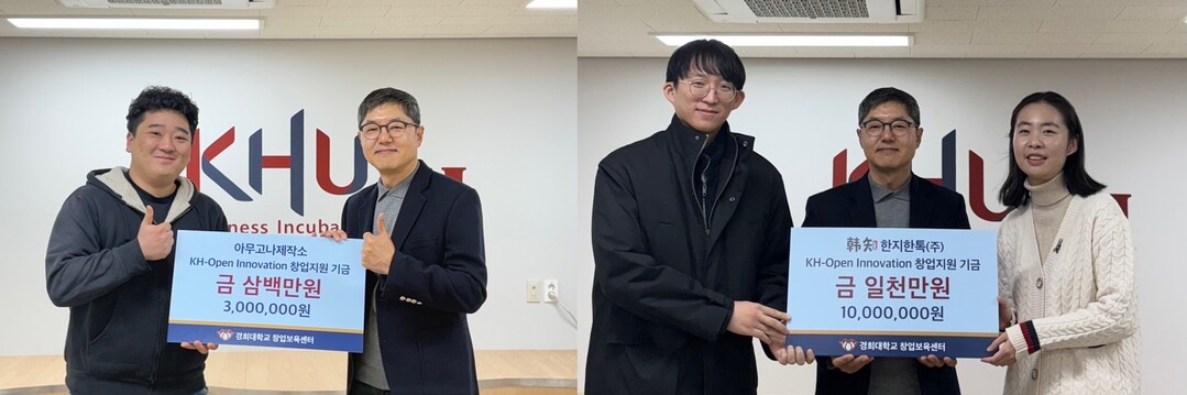 장영표 경희대 국제캠퍼스 창업보육센터장은 “두 기업이 보여준 기부문화는 창업 생태계에 긍정적인 영향을 미칠 것”이라며 “앞으로도 입주기업이 성장할 수 있도록 체계적으로 지원해 창업 기업의 성공을 위해 최선을 다할 것”이라고 말했다.