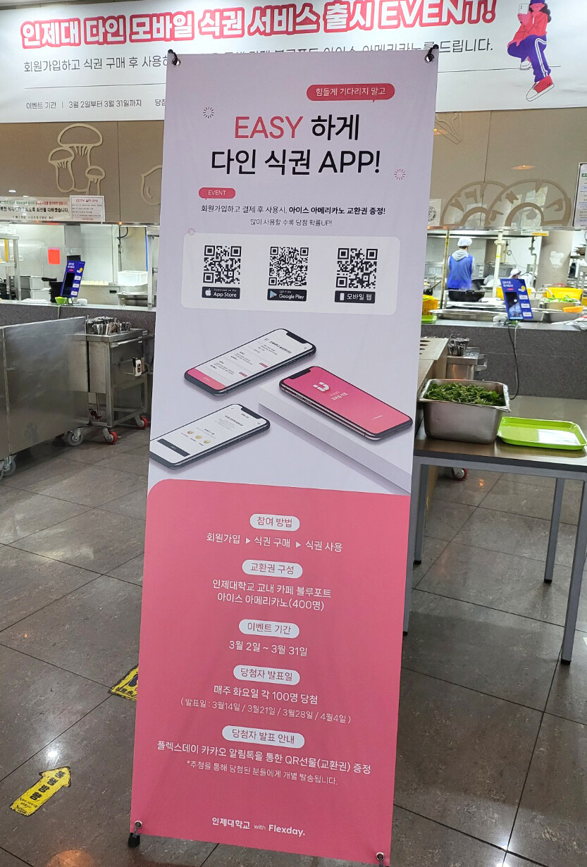 9일 인제대에 따르면 직영 학생 식당인 다인이 지난 2일부터 학생들이 모바일 앱을 통해 손쉽게 식권을 구매해 식당을 이용할 수 있도록 인제페이를 도입했다.