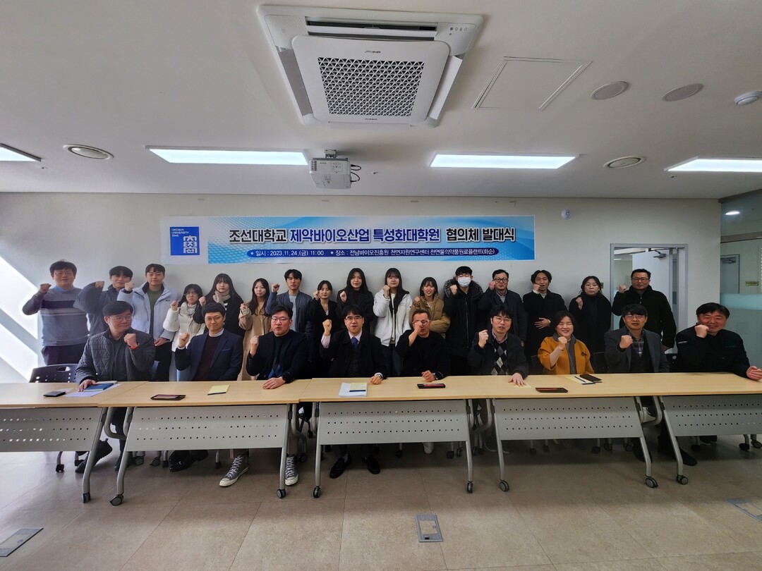 조선대 제약바이오산업 특성화대학원 지원 협의체 발대식 장면. 사진=조선대 제공 |