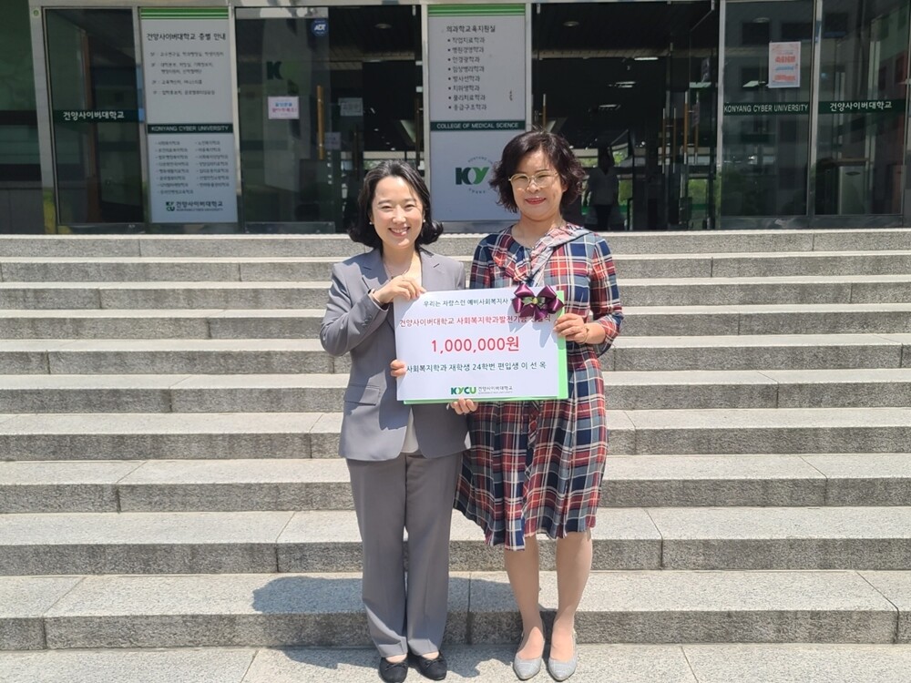 왼쪽부터 배나래 사회복지학과장, 사회복지학과 이선옥 학생. 사진=건양사이버대 제공 |
