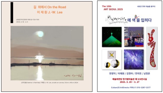 왼쪽부터 개인전 ‘길 위에서 On the road’, 아트페어 ‘ART SEOUL 2025’ 포스터. |