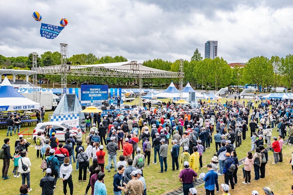 [대학저널 온종림 기자] 영남대학교와 영남대 총동창회가 지난달 29일 ‘천마가족 모교방문 트레킹 대회’를 열었다. 영남대 동문들과 가족, 학생, 교직원 등 대학의 모든 구성원 2천여 명이 어우러져 캠퍼스를 걸으며 단합의 시간을 갖는 행사다.