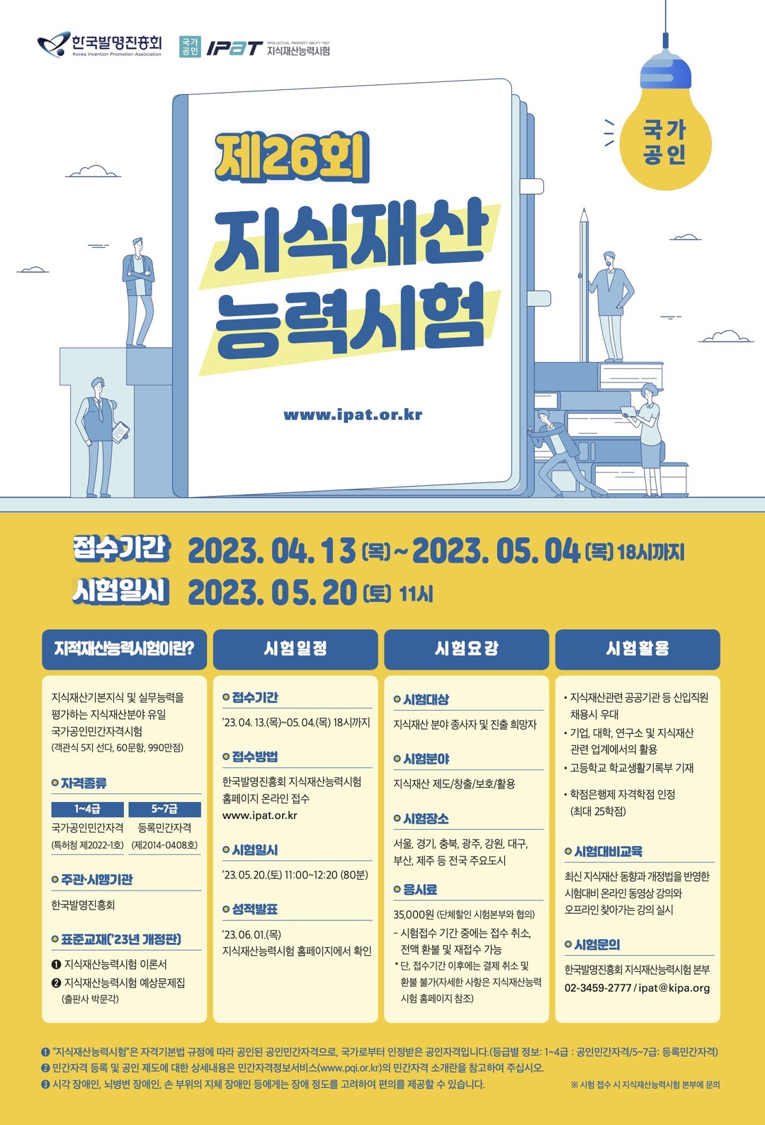 시험 관련 문의는 한국발명진흥회 지식재산능력시험본부로 할 수 있다.