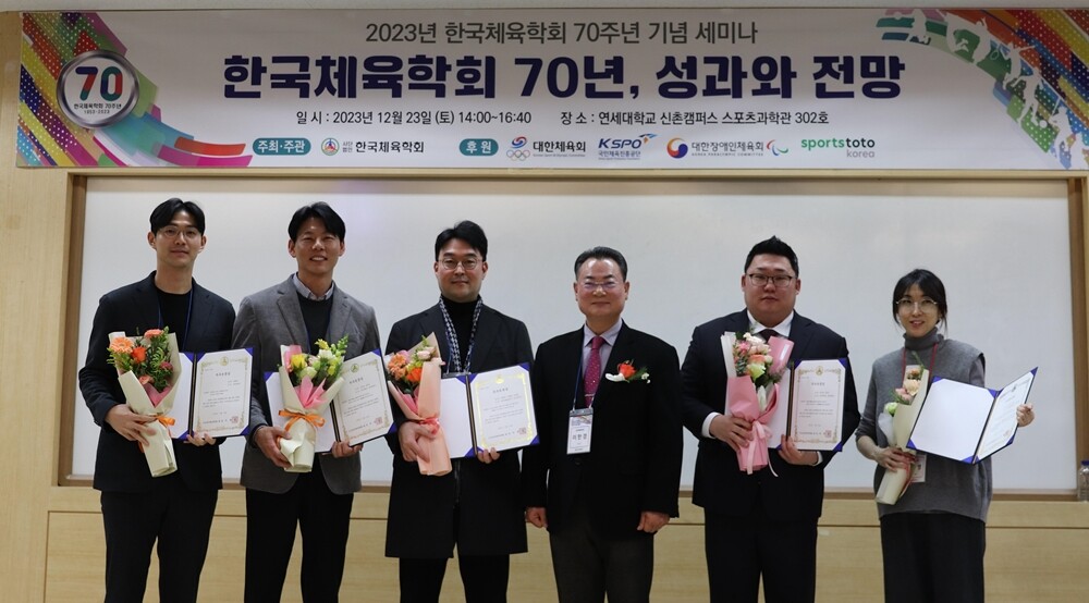 [대학저널 온종림 기자] 한신대학교 특수체육학과 명왕성 교수와 박상현 교수가 지난 23일 연세대 스포츠과학관에서 열린 2023 한국체육학회 70주년 세미나에서 ‘2023년 한국체육학회 우수논문상’을 수상했다. 이날 세미나 주제는 ‘한국체육학회 70년, 성과와 전망’이었다.