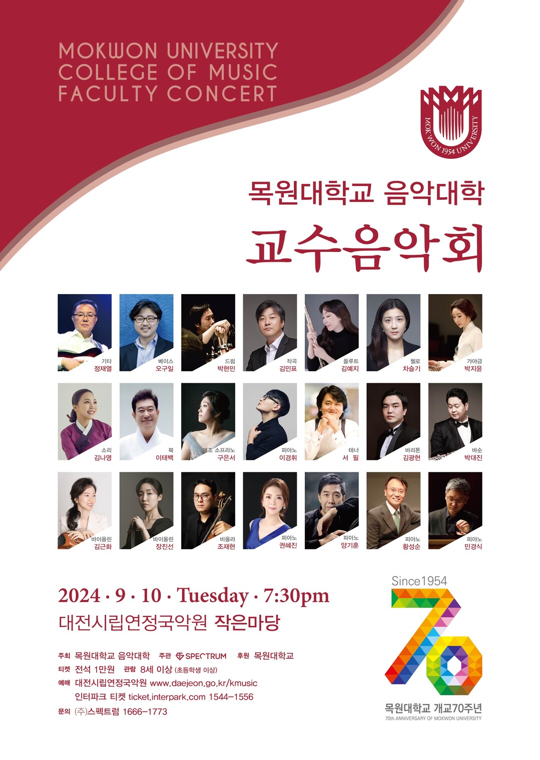 목원대 음악대학은 오는 10일 오후 7시30분 대전시립연정국악원 작은마당에서 ‘목원대 음악대학 교수음악회’를 진행한다고 9일 밝혔다.