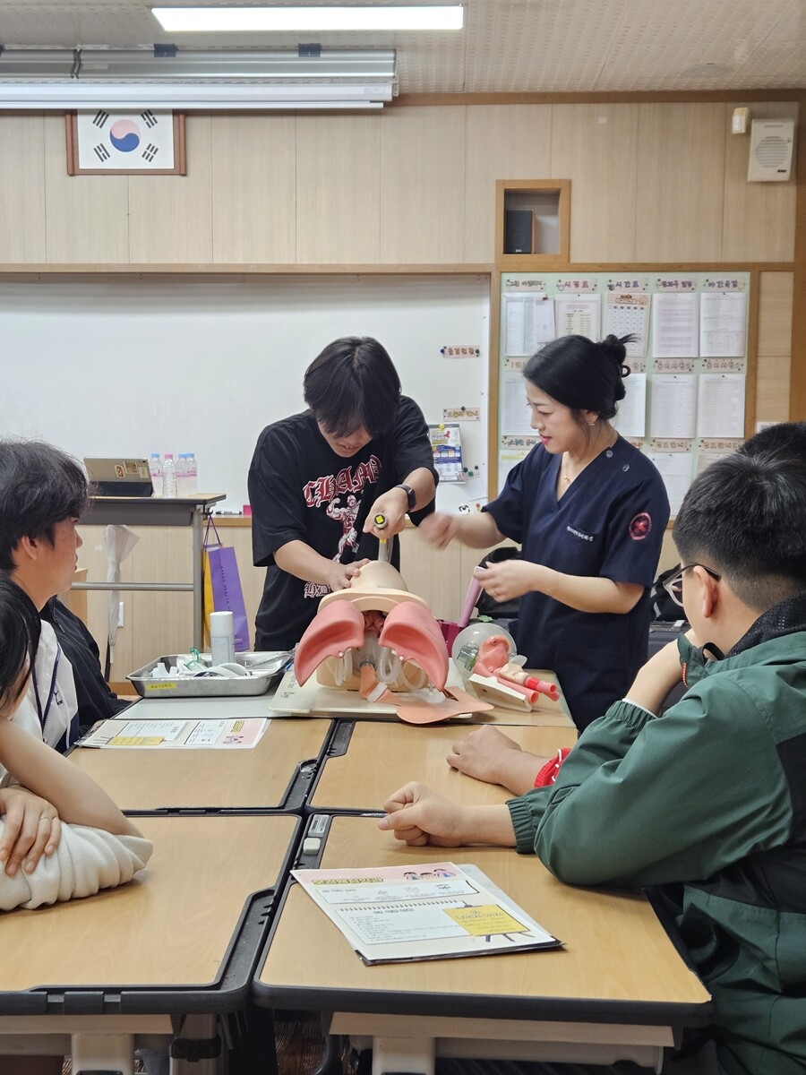 주요 활동으로는 ▲치아 형태 본뜨기 실습, ▲Q-ray 활용 충치균 탐색 프로그램, ▲테이핑 활용 가족 건강관리 체험, ▲퍼스널 컬러 진단 및 네일아트·타투 체험, ▲응급상황 기도 확보법 실습 등 다양한 체험과 진로 Q&A 멘토링으로 청소년들의 진학과 진로 탐색을 도왔다.