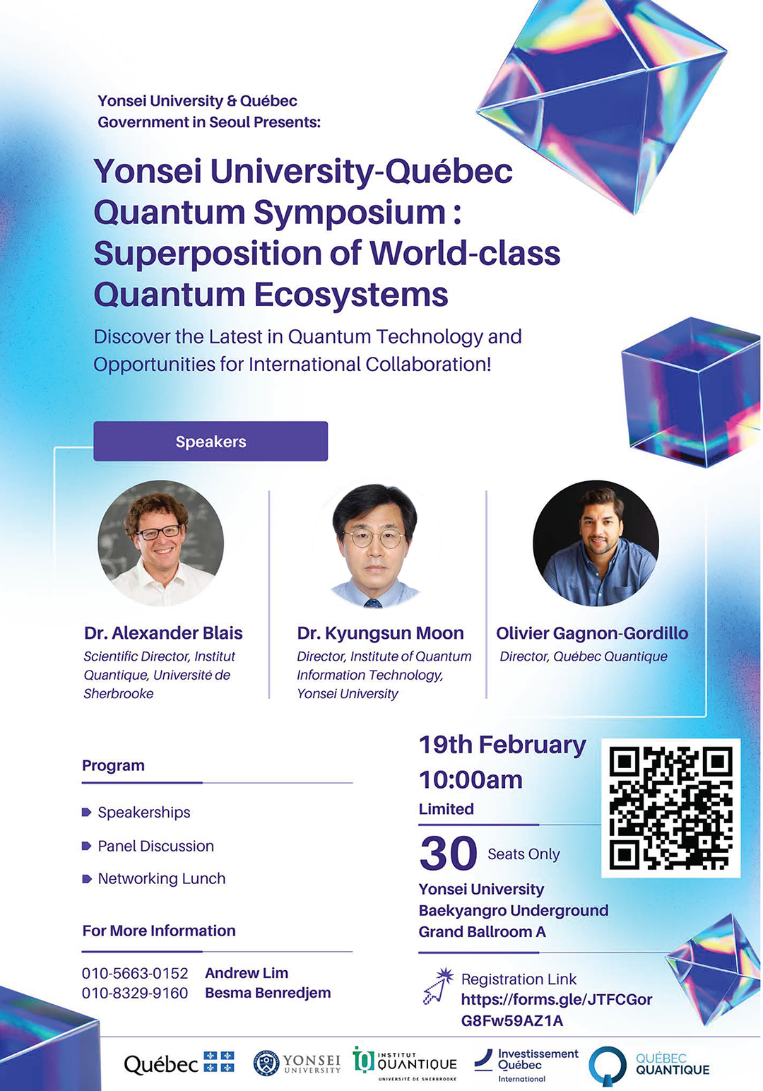 이 행사는 2월 19일 오전 10시 연세대 백양누리 그랜드볼룸에서 ‘Yonsei University-Québec Quantum Symposium: Superposition of World-class Quantum Ecosystems’를 주제로 열린다.