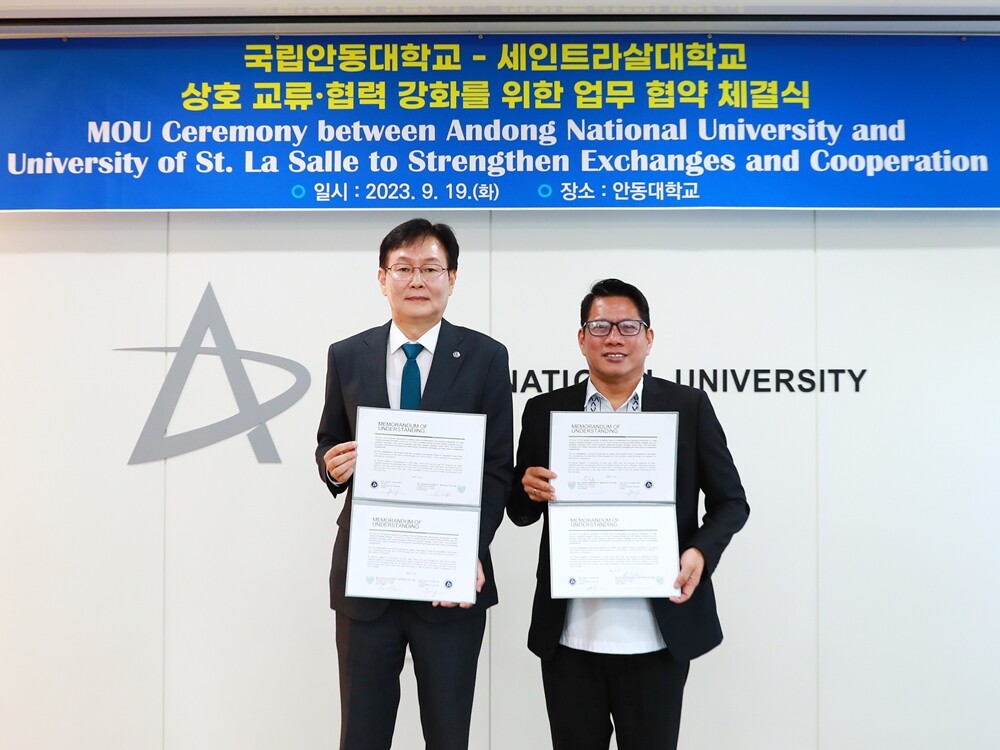 [대학저널 온종림 기자] 안동대학교가 지난 19일 대학 본관에서 필리핀 바콜로드시에 위치한 세인트라살(University of Saint La Salle)대학교와 학술교류협정을 체결했다.