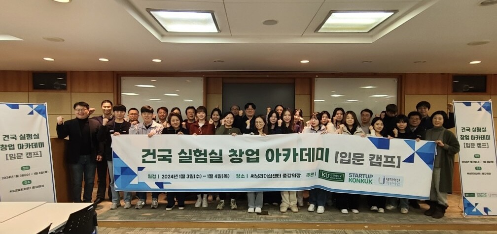 [대학저널 온종림 기자] 건국대학교 창업지원단이 지난 3~4일 건국 실험실 창업 아카데미 입문캠프를 개최했다. 건국 실험실 창업 아카데미는 1박 2일 입문캠프, 심화 교육(멘토링), 경진대회로 구성돼 있다.