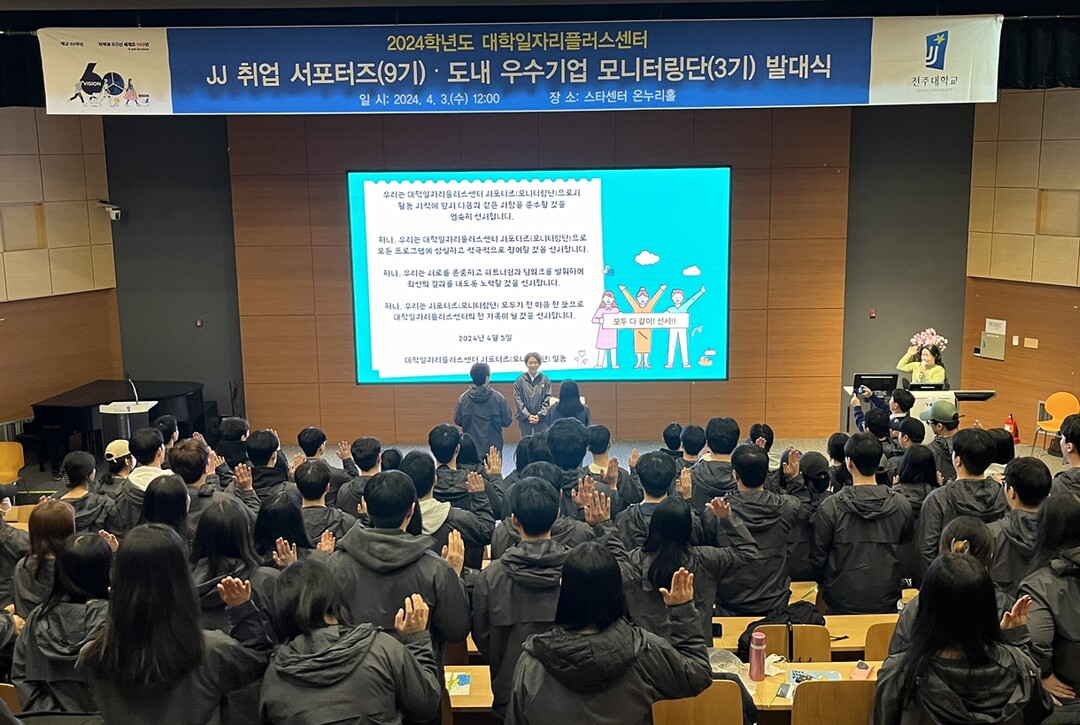 [대학저널 이선용 기자] 전주대학교 대학일자리플러스센터가 3일 청년정책고용정책과 도내 우수기업 인지도 확산을 위한 JJ 취업 서포터즈(9기)와 도내 우수 기업 모니터링단(3기) 발대식을 개최했다.