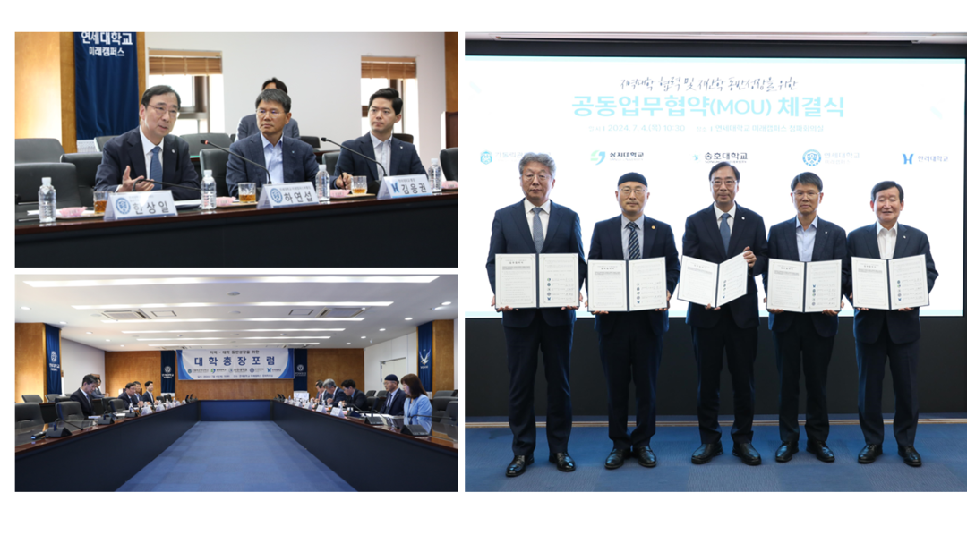 [대학저널 이선용 기자] 연세대학교 미래캠퍼스가 7월 4일 오전 10시 30분 대학본부 청파회의실에서 가톨릭관동대학교, 상지대학교, 송호대학교, 한라대학교와 ‘지역-대학 동반성장을 위한 대학총장 포럼을 개최했다.