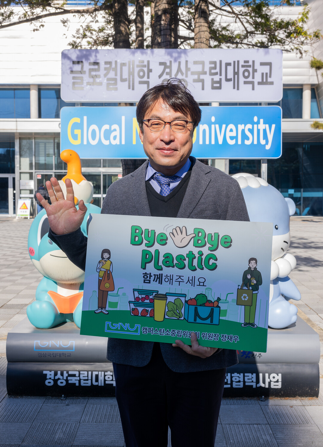 [대학저널 이선용 기자] 경상국립대학교 캠퍼스 탄소중립위원회 위원장인 정재우 부총장은 12월 22일 지구를 위한 실천 ‘바이바이 플라스틱(ByeBye Plastic) 챌린지’에 동참했다.