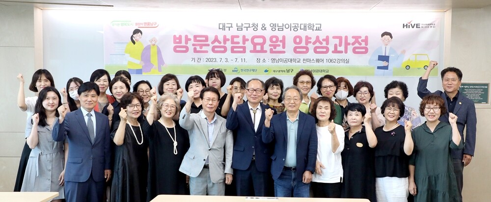 영남이공대 HiVE센터는 대구시 남구와 사회복지에 관심이 많은 지역 주민 30명을 대상으로 지난 3~11일 총 45시간의 교육을 진행하고, 평생직업 교육 고도화 및 지역특화분야 케어서비스 전문가 양성에 나섰다.