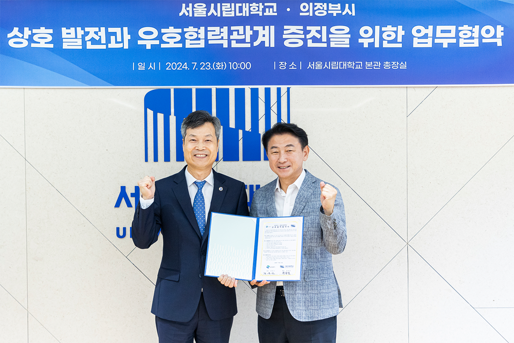원용걸 총장은 “서로가 가진 우수한 기술과 연구 경쟁력을 교류하고 협력해 나감으로써 양 기관의 경쟁력을 제고하고, 학생들에게는 연구 및 현장 활동과 나아가 취업 등에 시너지 효과가 있을 것”이라고 말했다. 김동근 시장은 “이번 협약을 통해 의정부시와 서울시립대학교가 함께 성장하고 발전할 수 있기를 바란다”고 전했다.