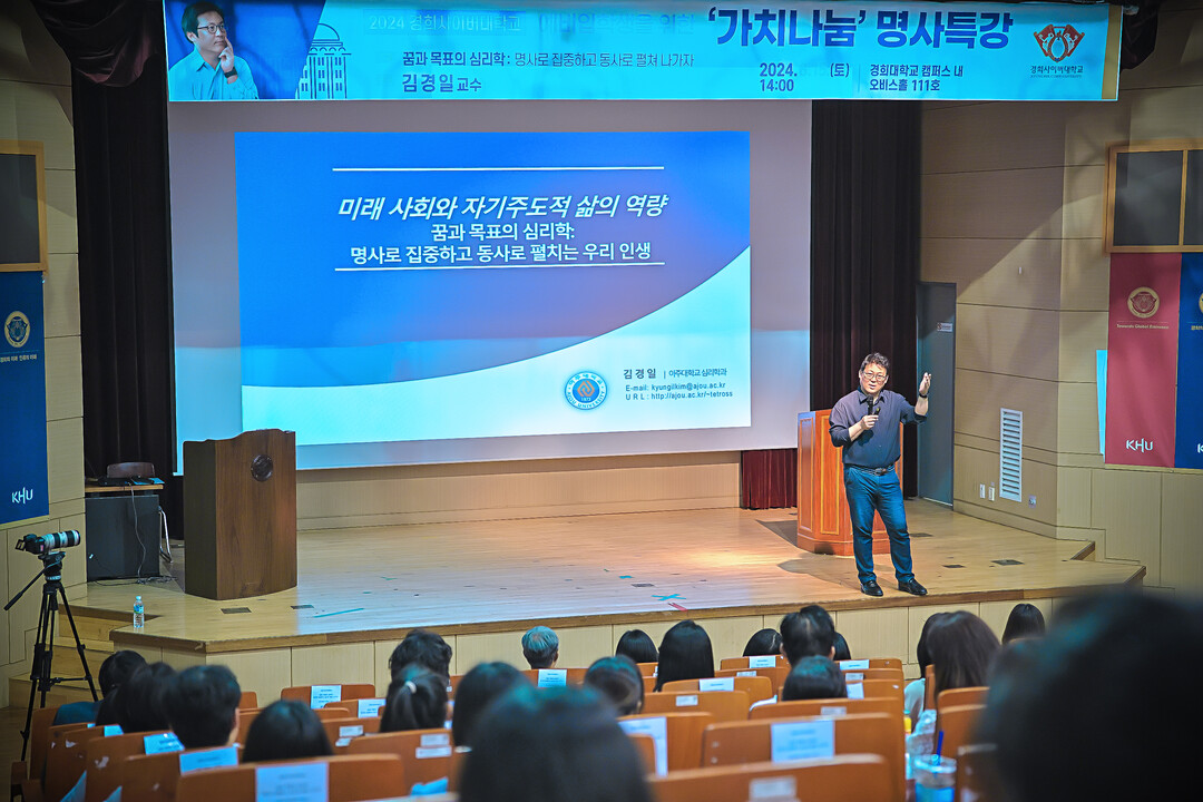 이번 프로그램은 ▲1부 특강 ▲ 2부 캠퍼스 투어 순서로 진행됐으며, 1부는 김경일 아주대 심리학과 교수가 ‘꿈과 목표의 심리학’이라는 주제로 특강했다.