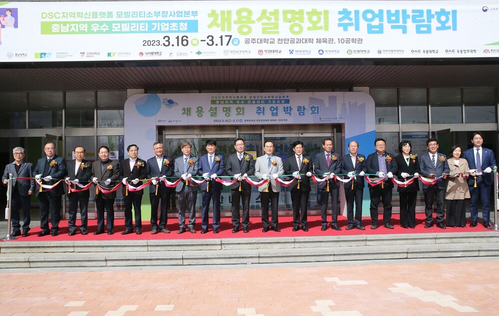 [대학저널 온종림 기자] 공주대학교는 DSC(대전·세종·충남)지역혁신플랫폼 모빌리티소부장사업본부가 16~17일 2023년 충남지역 우수 모빌리티 기업초청 취업박람회-채용설명회를 열었다고 밝혔다.