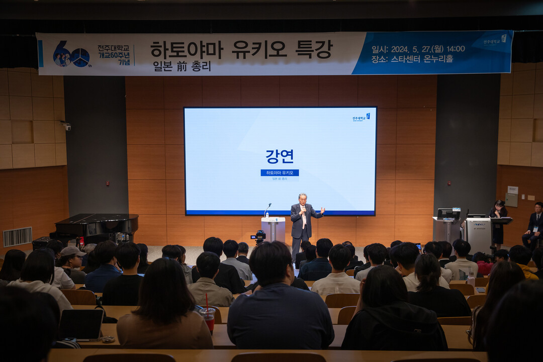 [대학저널 이선용 기자] 전주대학교는 5월 27일 학내 스타센터 온누리홀 및 하림미션홀에서 하토야마 유키오 일본 전 총리 초청 특별 강연 및 토론회를 개최했다.