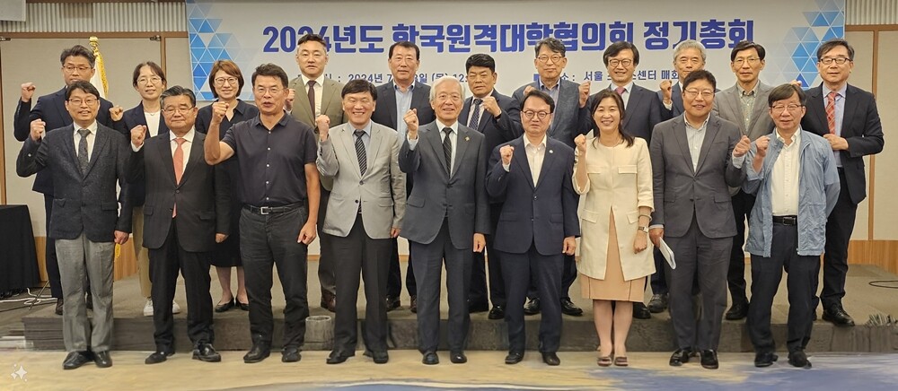 [대학저널 대학저널] 전국 22개 사이버대학 운영 협의회체인 (사)한국원격대학협의회가 18일 서울 중구 소재 한국프레스센터에서 2024년도 정기총회를 개최하고 글로벌사이버대학교 공병영 총장을 제13대 회장으로 선출했다.