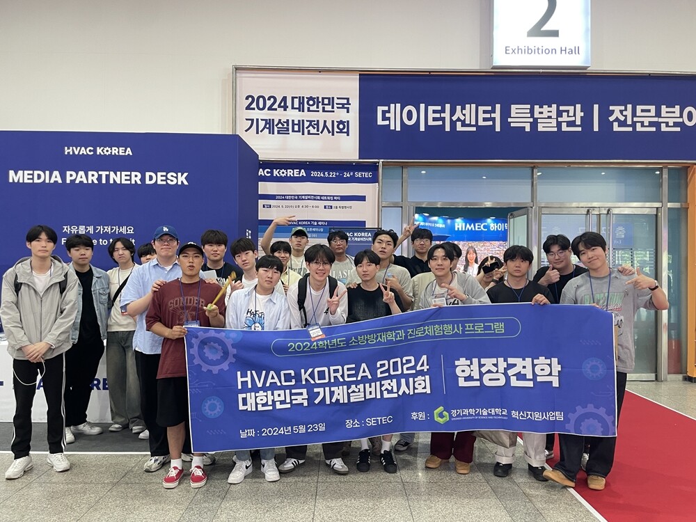 [대학저널 온종림 기자] 경기과학기술대학교 소방방재학과가 지난 23일 서울 강남구 SETEC(세텍)에서 개최된 제9회 ‘2024 대한민국 기계설비전시회(HVAC KOREA 2024)’에서 소방안전 교육 전문성 강화를 위한 현장견학을 진행했다.