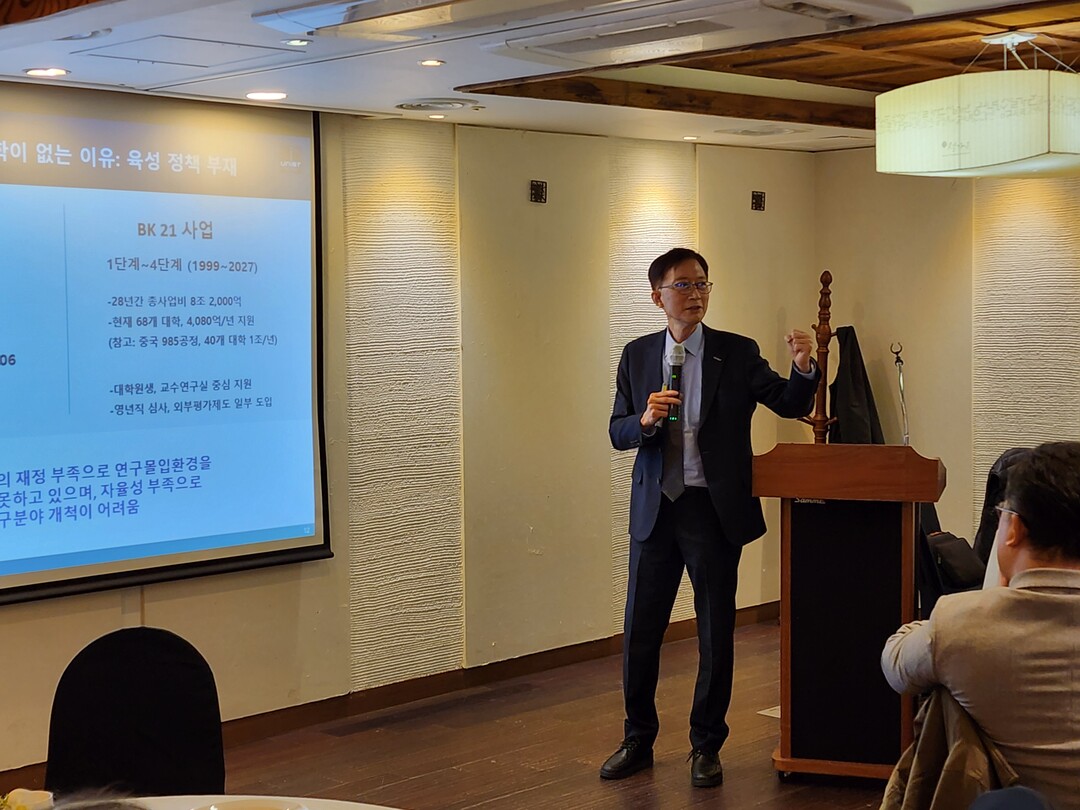 또 이 총장은 “1970년대 이후 KAIST를 중심으로 확산된 현재의 과학기술 연구지원시스템은 응용 기술을 위주로 연구자 개인 지원에 집중해왔다”고 지적하며, 이를 개도국 방식의 ‘추격자형 연구중심대학 1.0’이라고 규정했다. 그러면서 “이제는 대한민국이 세계를 선도하는 퍼스트 무버형 연구중심대학 2.0 육성 체계를 제대로 갖춰야만 비로소 과학기술 선진국으로 도약할 수 있다”고 재차 강조했다.