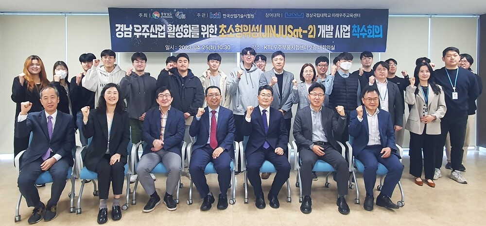 경상국립대는 25일 진주시 우주부품시험센터 세미나실에서 열린 ‘초소형 위성 진주샛-2(JINJUSAT-2) 개발 과제 착수회의’에 항공우주및소프트웨어공학부 김해동 교수가 이끄는 우주시스템연구실 학생 10여 명, 경상국립대 미래우주교육센터(위성시스템핵심기술연구센터, 센터장 박재현 교수) 소속 학생 5명이 참석했다.
