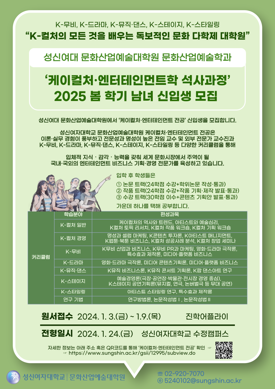 성신여대 ‘케이컬처·엔터테인먼트학 석사과정’ 모집 포스터.