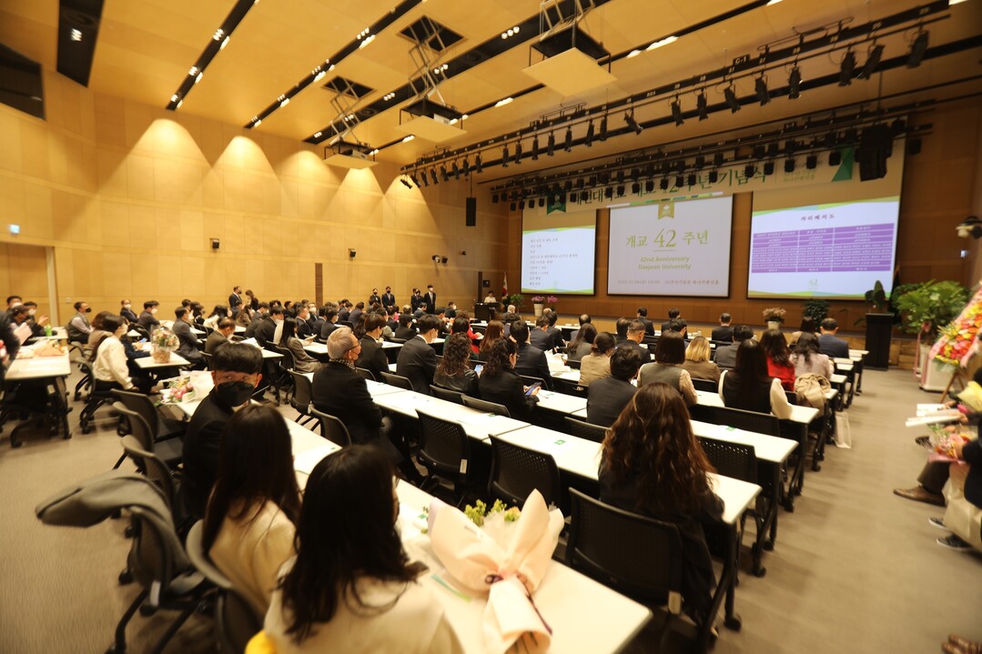 28일 대전대 대학 30주년기념관 하나컨벤션홀에서 ‘개교 42주년 기념식’ 행사가 열리고 있다. 사진=대전대 제공대학저널 / 온종림 기자 jrohn@dhnews.co.kr |