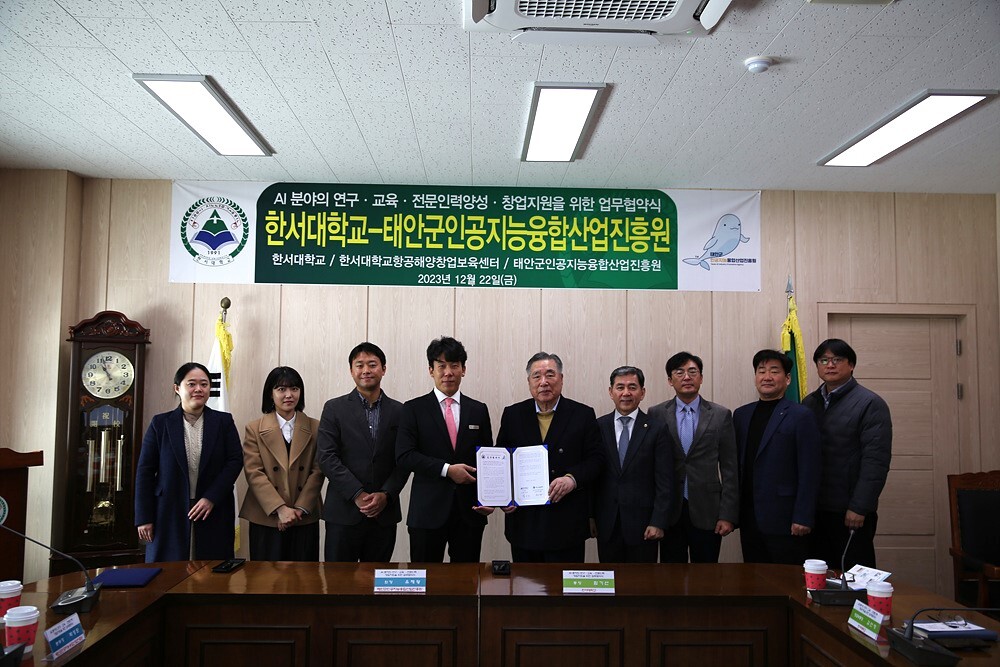 [대학저널 이선용 기자] 한서대학교와 태안군인공지능융합산업진흥원이 12월 22일 한서대 태안캠퍼스 본관 2층 대회의실에서 교류 협력 협약을 체결했다.