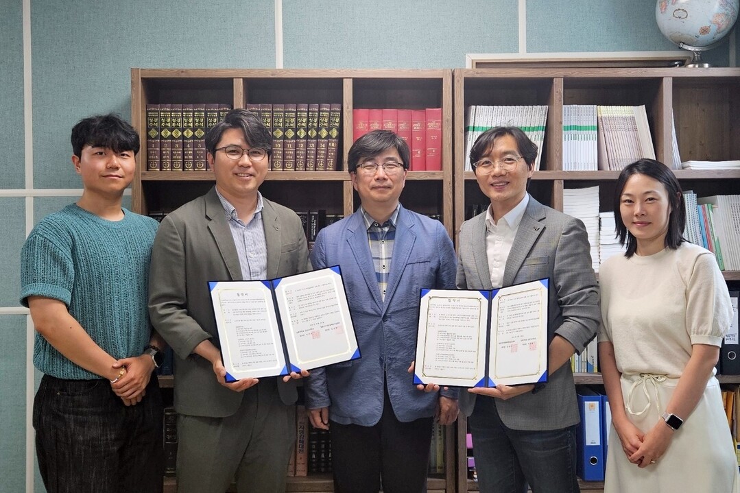 왼쪽부터 은기환 후기청소년 동아리 스미다 회장, 이건호 상담심리학과장, 정성진 시립창동인터넷중독예방상담센터 운영위원장, 김상우 시립창동인터넷중독예방상담센터장, 전연안 시립창동인터넷중독예방상담센터 팀장. |