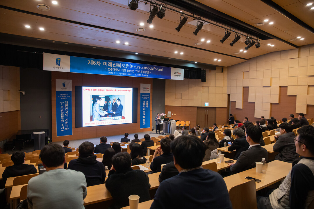 전주대가 개교 60주년을 기념하여 기초과학연구원(IBS) 연사를 초청해 제6차 미래전북포럼을 개최했다. 사진=전주대 제공 |