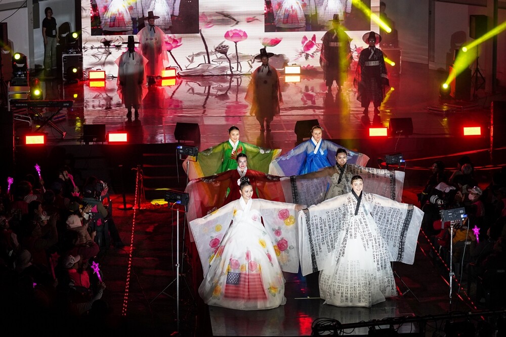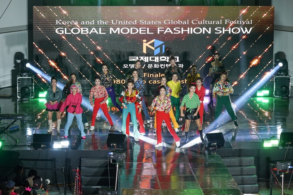 국제대 모델과와 문화예술콘텐츠과의 교수진과 학생들이 ‘2024 한미 다문화 시민통합 축제’에서 한복패션쇼를 선보이고 있다. 사진=국제대 제공 |