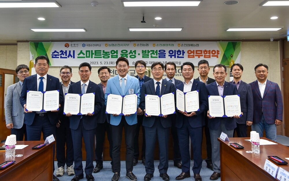 [대학저널 조영훈 기자] 순천대학교는 스마트농업 발전을 위해 순천시와 농협중앙회 순천시지부, 순천농협, 순천광양축협, 순천원협과와 업무협약을 체결했다고 24일 밝혔다.