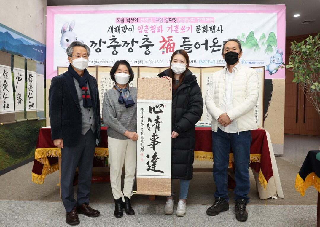 고암 송화정 선생은 서예와 차를 연구하며 인간극장에 출연하기도 했다. 가훈 쓰기는 교직원과 지역민 40명에게 사전 신청을 받았으며, 입춘첩은 당일 누구나 참여할 수 있도록 진행됐다.