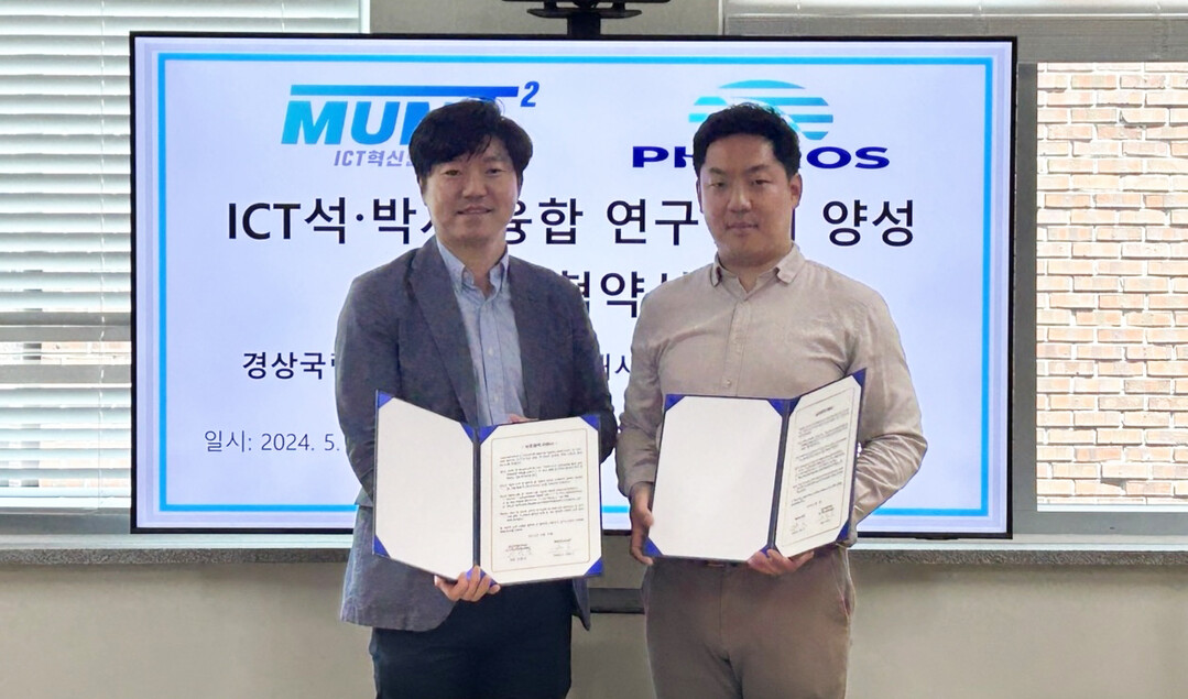 [대학저널 이선용 기자] 경상국립대학교 ‘ICT혁신인재사업단’이 5월 17일 오전 경상국립대 공과대학 회의실에서 ㈜파로스마린(이슬기 대표)과 업무협약을 체결했다.