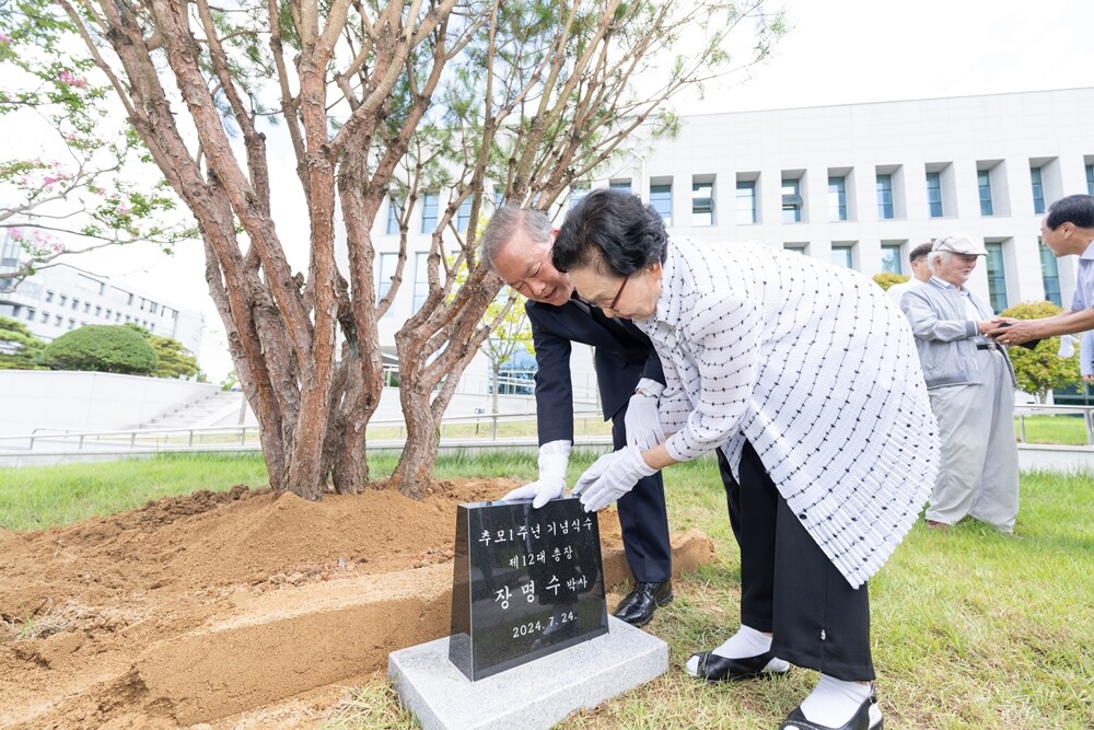 [대학저널 온종림 기자] 짙푸른 녹음으로 대학 구성원뿐 아니라 지역민들에게도 소중한 자산이 되어주는 지금의 전북대 캠퍼스를 만든 주역인 故 장명수 전북대 제12대 총장의 1주기 추념식이 24일 전북대 교정에서 열렸다.