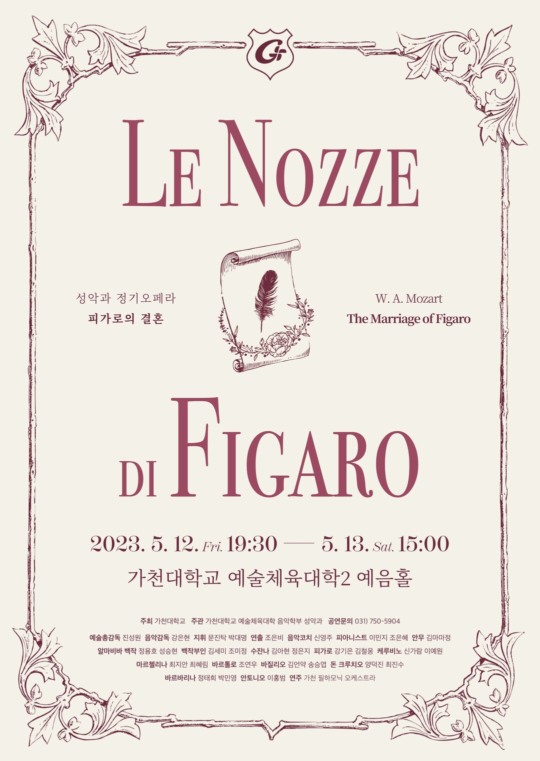 가천대는 성악 인재 양성을 위해 모차르트의 마술피리와 같은 고전 오페라부터 베르디 라 트라비아타, 도니제티 사랑의 묘약 등 벨칸토 오페라까지 폭넓게 제작해왔다. 특히 지난 2019년 코지 판 투테, 2021년 돈 조반니에 이어 올해 피가로의 결혼을 무대에 올리며 모차르트의 다폰테 3부작을 완성했다.
