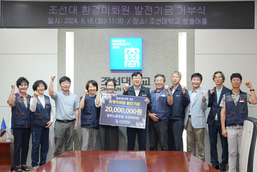 조선대는 18일 오전에 발전기금 기부식을 열고, 민주노총 전국민주일반노동조합 조선대학교지회 100여명의 조합원들이 장학금으로 2천만 원을 전달했다고 밝혔다.