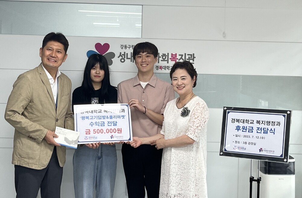 [대학저널 온종림 기자] 경복대학교는 복지행정학과가 대학 축제에서 플리마켓으로 얻은 수익금 50만원을 성내종합사회복지관에 기부했다고 18일 밝혔다.
