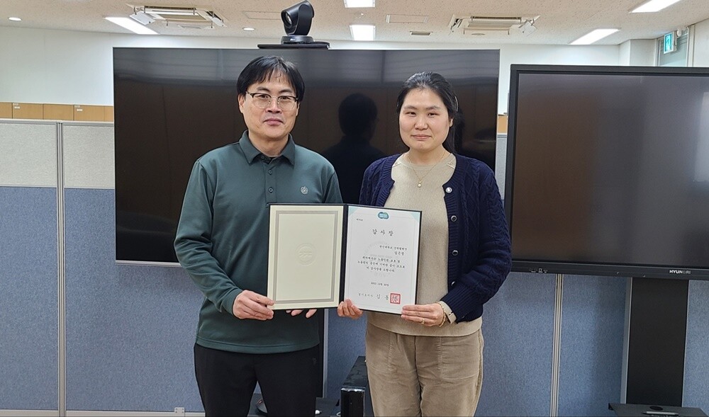 감사장을 수상한 김은정 직원(연구관리 담당)은 “노동의 가치와 직업윤리, 노동인권 인식 개선을 위한 사업에 참여할 수 있어 감사하고 소중한 시간이었다”며 “앞으로도 노동인권 보호 및 권익 증진을 위한 업무에 적극적으로 기여하고 싶다”고 소감을 전했다.