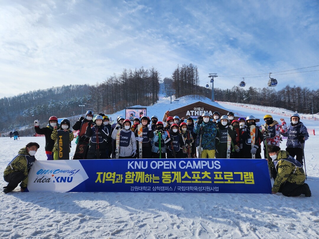 [대학저널 김진수 기자] 강원대학교는 삼척캠퍼스가 지난 18~19일 지역주민과 외국인 유학생 등 80여명을 대상으로 ‘KNU Open Campus 동계스포츠 프로그램’을 열었다고 25일 밝혔다.