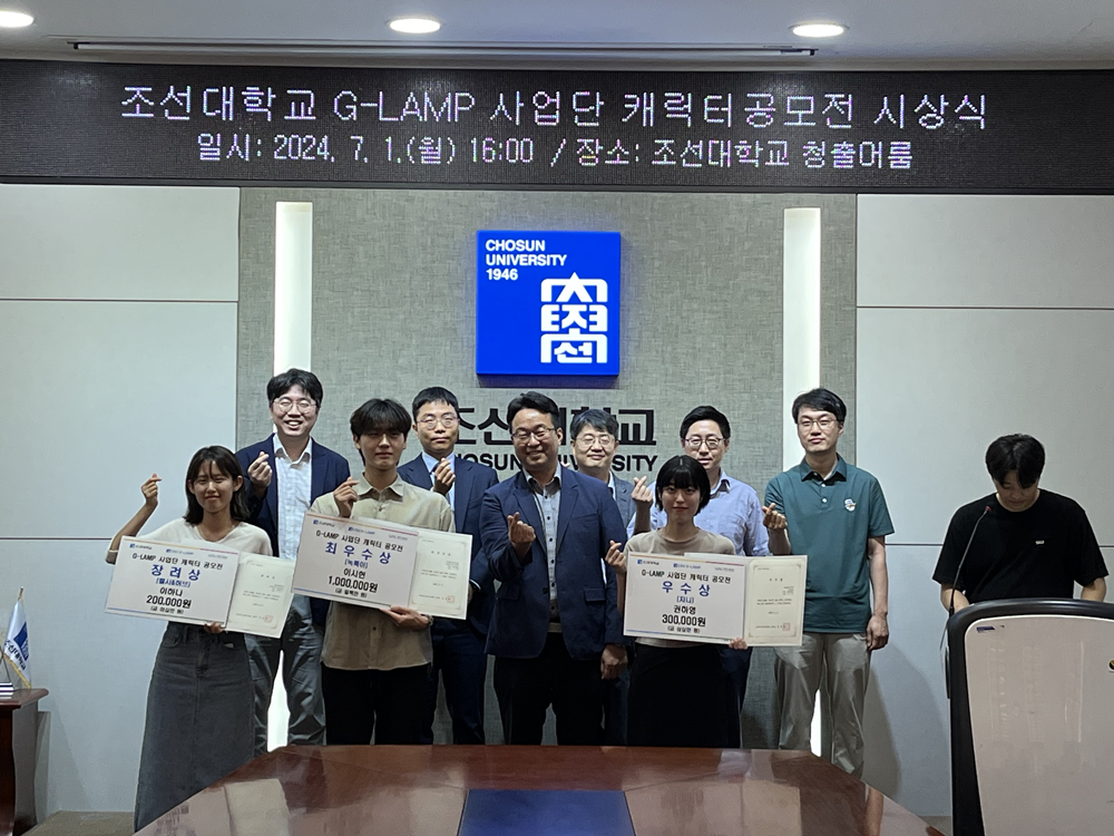 [대학저널 온종림 기자] 조선대학교 G-LAMP 사업단이 지난 1일 본관 청출어룸에서 G-LAMP사업단 캐릭터 공모전 시상식을 열어‘광록이’를 사업단의 캐릭터로 선정했다.