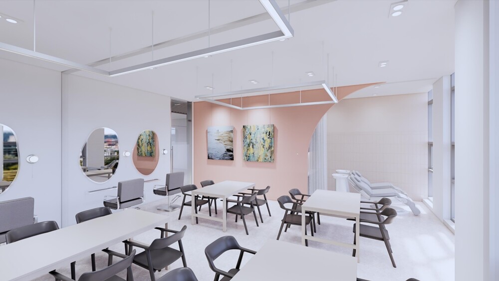 대학 신축 교사에 마련된 헤어 뷰티 실습실. 사진=건양사이버대 제공 |
