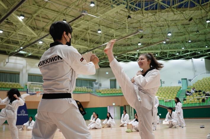 태권도의 날을 주제로 서울과기대에서 유학 중인 외국인 교환학생을 대상으로 진행한 이날 행사는 ▲태권도 도복 입기 체험 ▲기본동작 ▲발차기 ▲격파 등 태권도의 다양한 면모를 두루 배울 수 있는 기회를 제공했다.