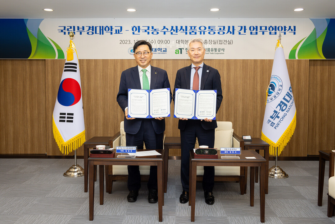 [대학저널 이선용 기자] 국립부경대학교와 한국농수산식품유통공사는 27일 오전 대학본부 3층 총장실에서 업무협약을 체결했다.