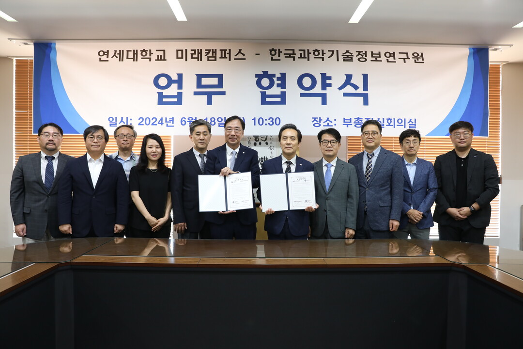 이날 협약식에는 연세대학교 하연섭 미래캠퍼스부총장과 한국과학기술정보연구원 김재수 원장을 포함한 양 기관의 주요 관계자들이 참석했다.