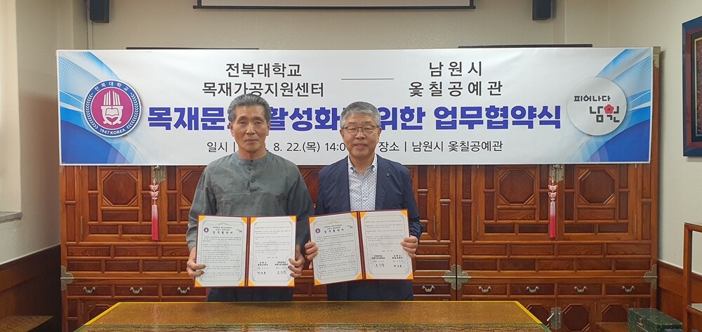 이날 협약식에는 전북대 오승원 목재가공지원센터장과 박강용 남원시 옻칠공예관장 등 양 기관 주요 관계자들이 참석했다.
