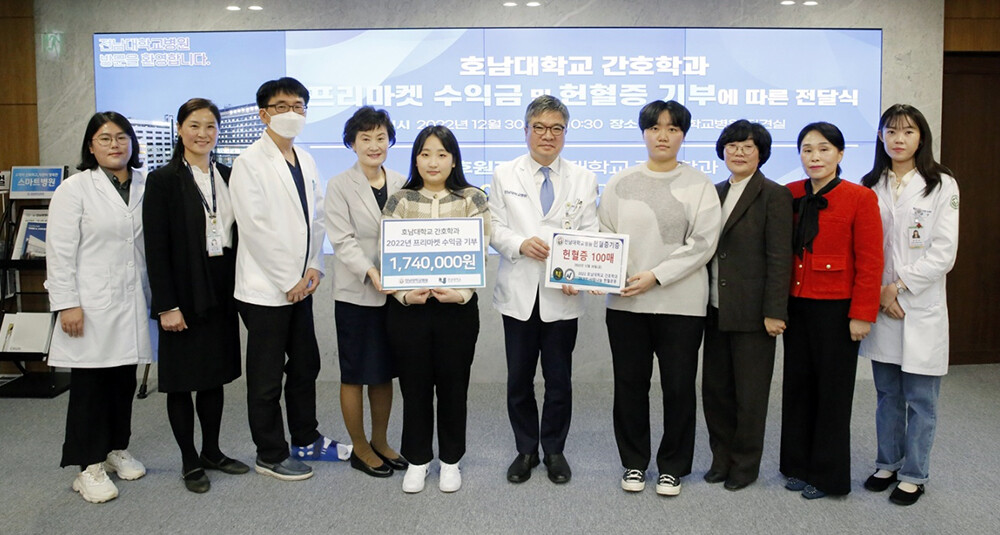 [대학저널 온종림 기자] 호남대학교는 간호학과가 지난 12월 30일 2022년 프리마켓 수익금 174만 원과 학생들이 직접 헌혈에 참여해 마련한 헌혈증 100매를 전남대학교병원에 기증했다고 2일 밝혔다.