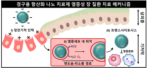 자가면역질환인 염증성 장 질환 경구용 항산화 나노 치료제 치료 메커니즘. |