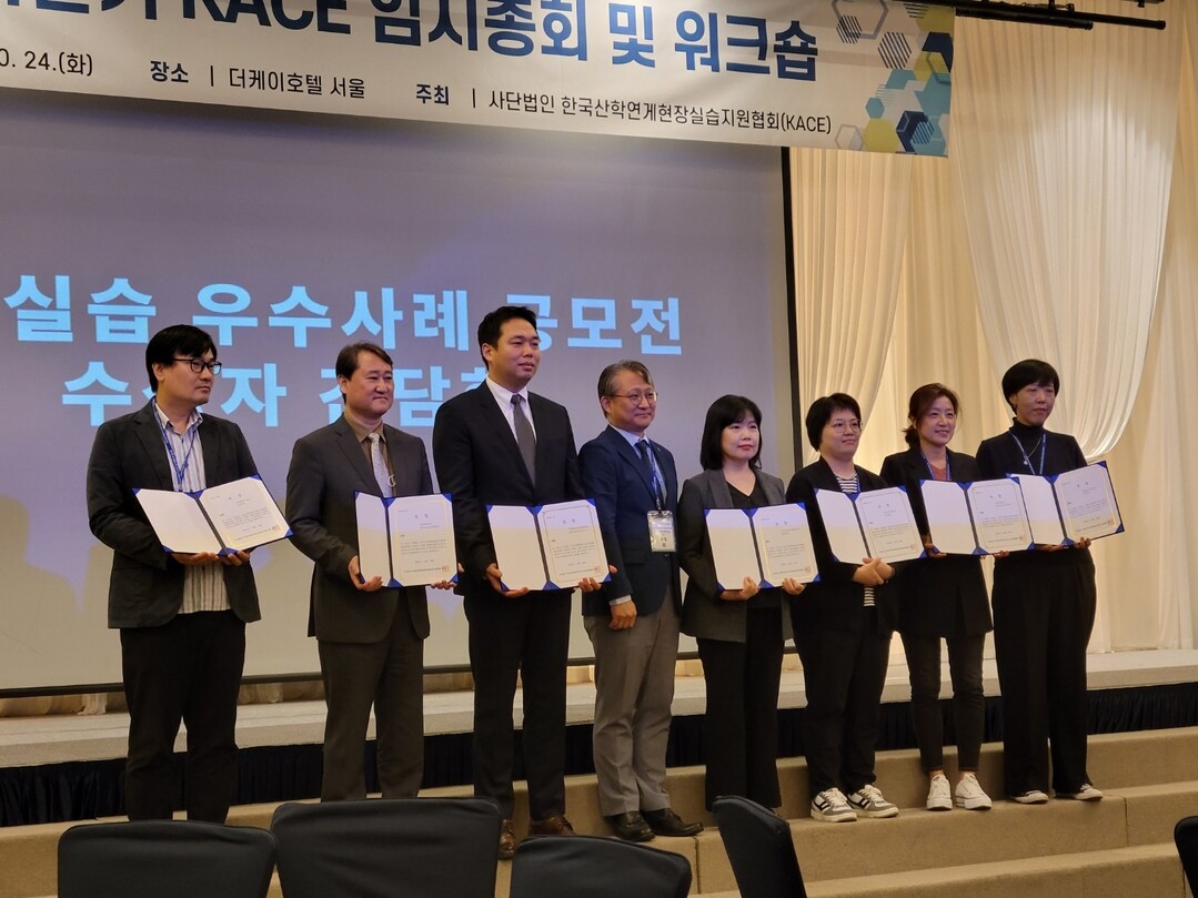 KACE는 9월 한 달 동안 전국 대학교(4년제, 2년제) 현장실습 운영 부서를 대상으로 ‘표준현장실습학기제 공모전’을 통해 심사를 거쳐 이날 대상, 금상 각 1팀과 은상 2팀, 동상 3팀 등 7팀을 선발했다.